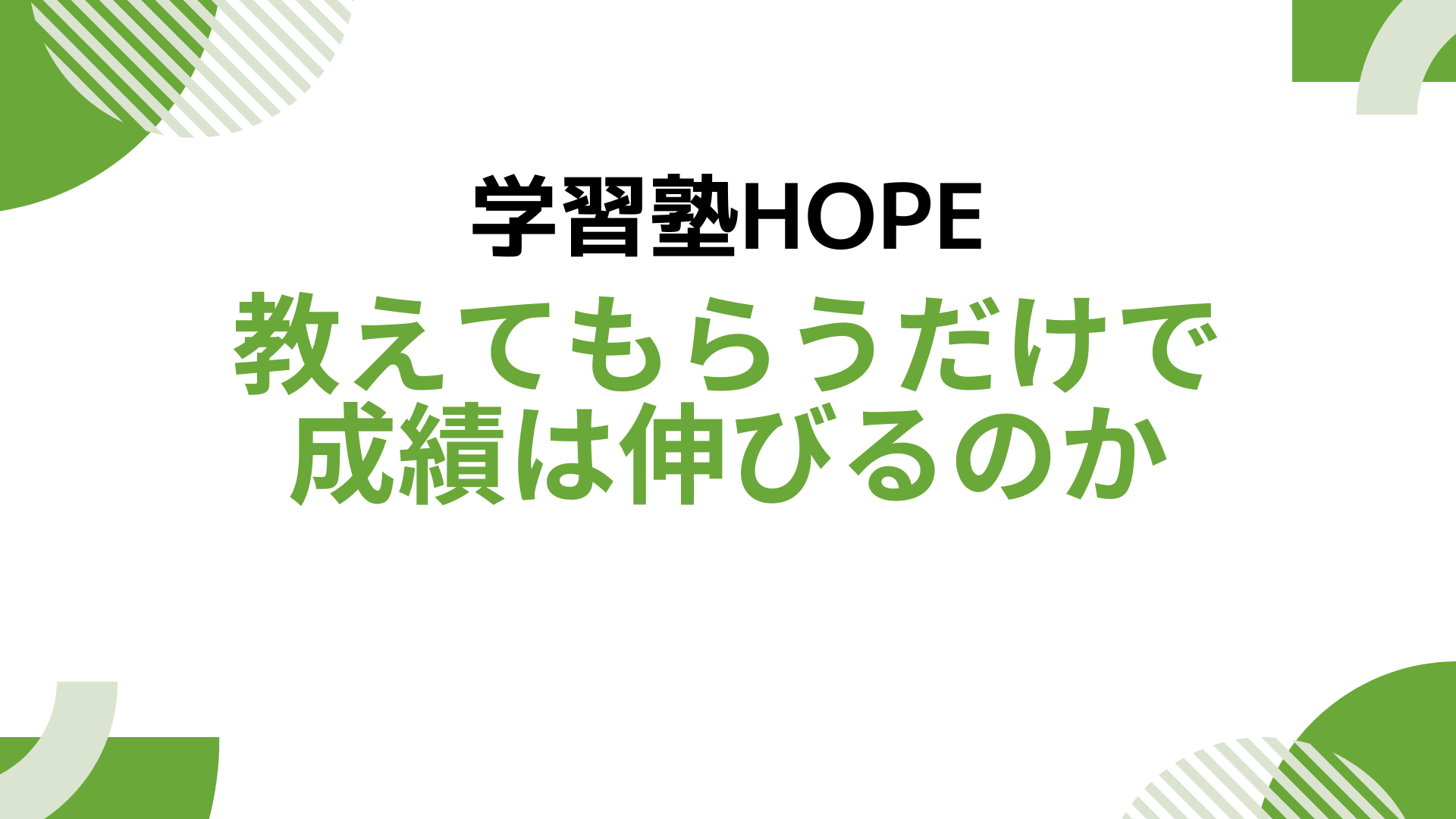 【学習塾HOPE】教えてもらうだけで成績は伸びるのか