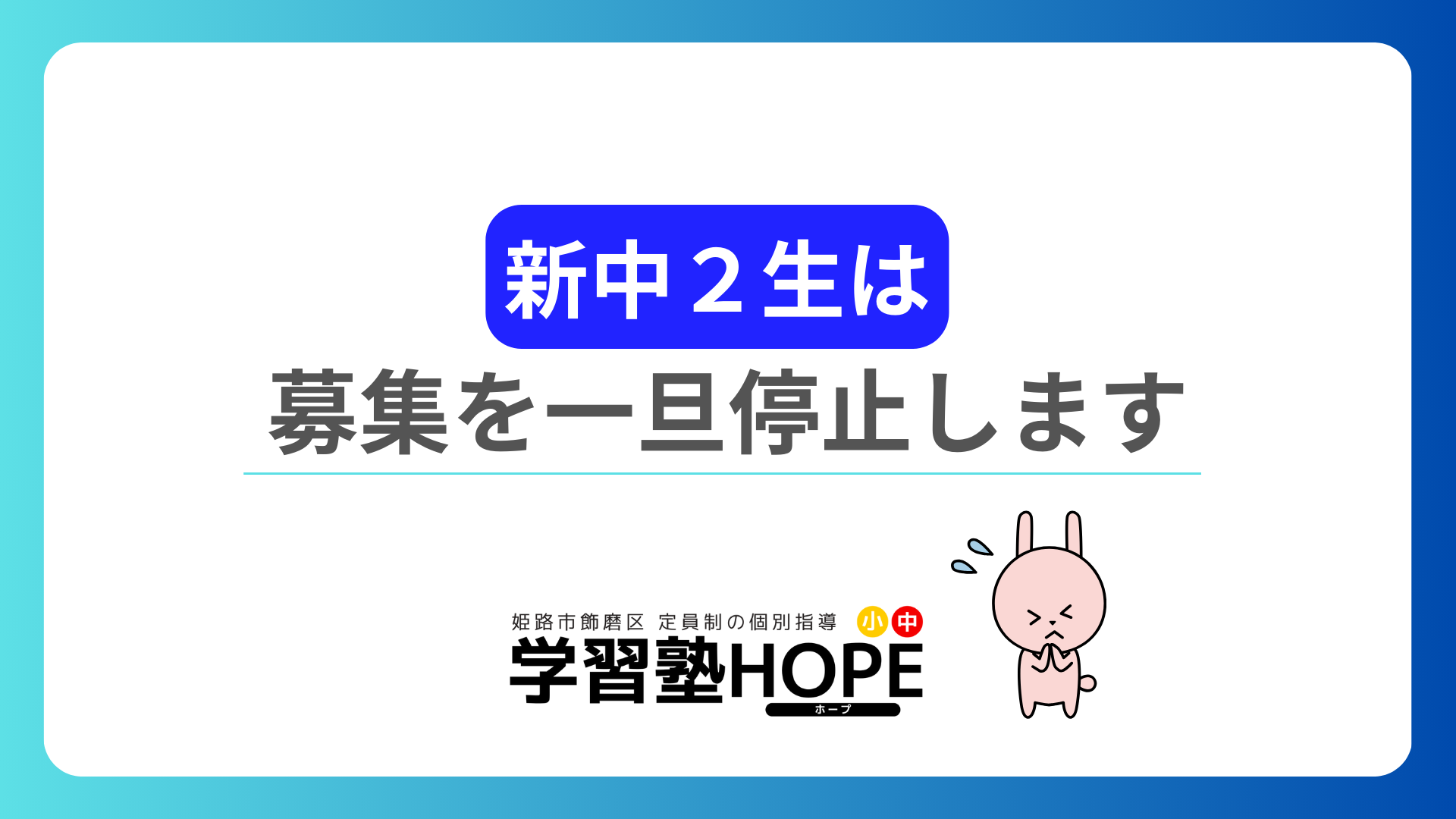 【学習塾HOPE】新中2生の募集を一旦停止します