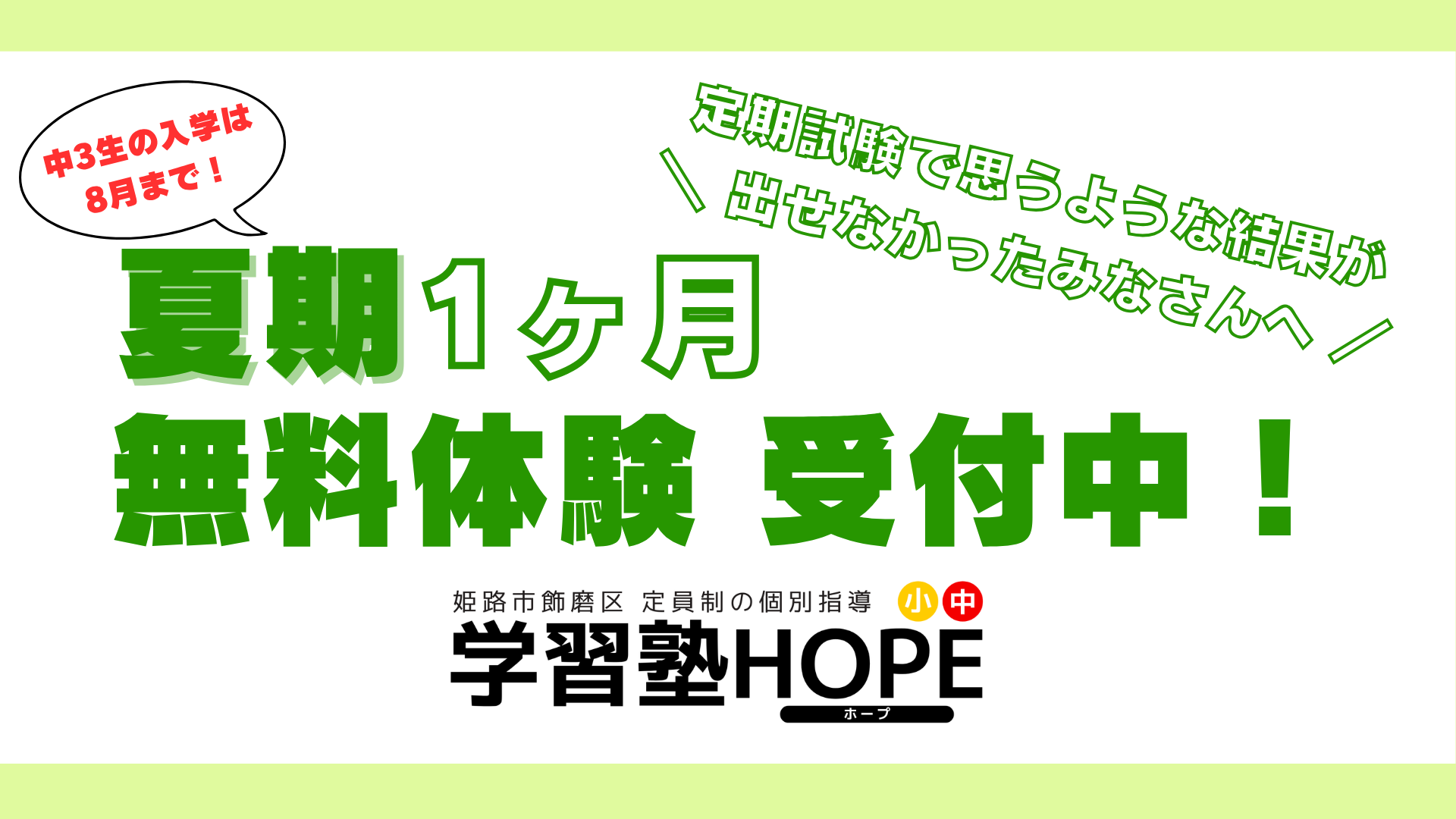 学習塾HOPEでは、夏期【1ヶ月】無料体験を実施します!
