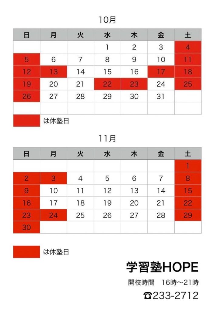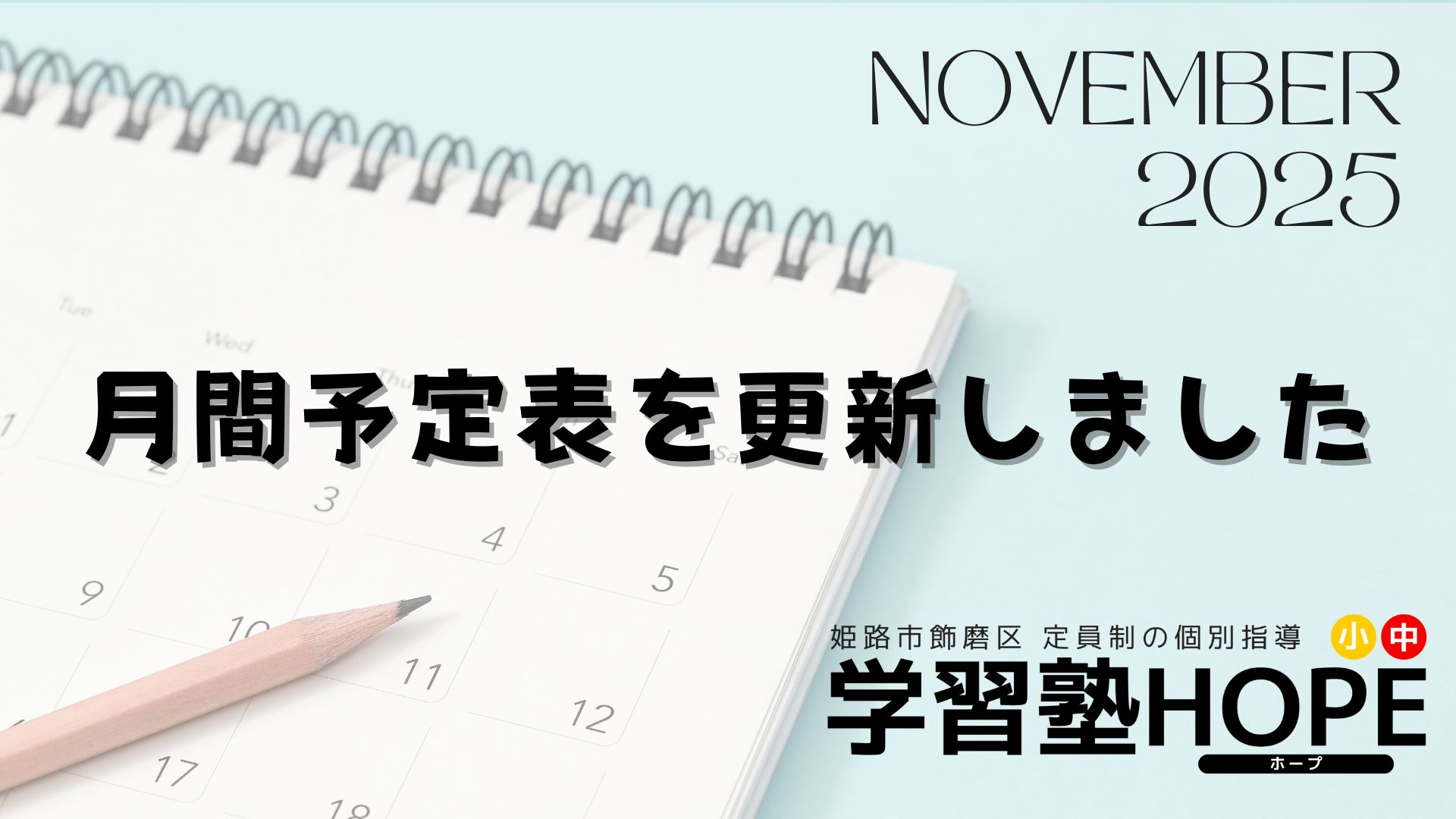 【学習塾HOPE】月間予定表を更新しました! 2025 10/17 お知らせ 2025年10月17日 こんにちは。学習塾HOPEです。 11月の月間予定表を更新しました!※合わせて10月の予定もご確認ください ご不明点などございましたら、お気軽にお問い合わせください! お知らせ よかったらシェアしてね! URLをコピーしました! 【学習塾HOPE】教室長コラム(10月) 【学習塾HOPE】教室長コラム(11月) 関連記事 【学習塾HOPE】教室長コラム(1月) 2026年1月5日 【学習塾HOPE】月間予定表を更新しました! 2025年12月12日 【学習塾HOPE】小6対象 中学準備講座開講!! 2025年12月8日 【学習塾HOPE】教室長コラム(12月) 2025年12月3日 【学習塾HOPE】テスト直前勉強会を実施しました! 2025年11月17日 【学習塾HOPE】月間予定表を更新しました! 2025年11月13日 【学習塾HOPE】教室長コラム(11月) 2025年11月4日 【学習塾HOPE】教室長コラム(10月) 2025年10月1日