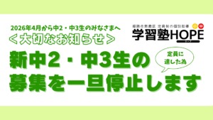 【学習塾HOPE】教室長コラム(2月)