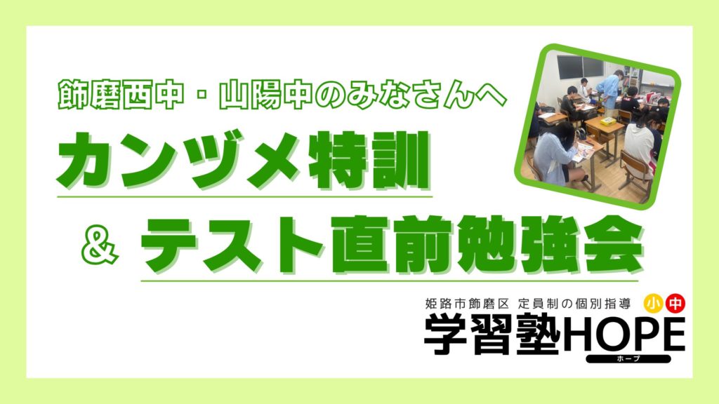 こんにちは。学習塾HOPEです。 いよいよ中間テストが近づいてきました。学習塾HOPEでは以下の日程で【カンヅメ特訓】と【テスト直前勉強会】を実施します!ぜひ参加してください! いよいよ中間テストが近づいてきました。学習塾HOPEでは以下の日程で【カ...
