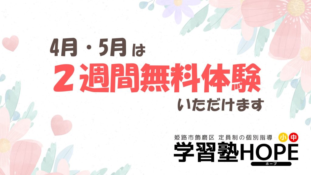 【学習塾HOPE】4月・5月は2週間無料でご体験いただけます!