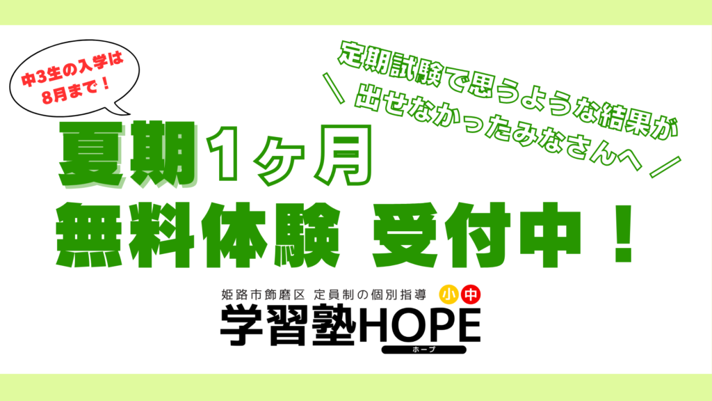 【学習塾HOPE】夏期1ヶ月 無料体験受付中!